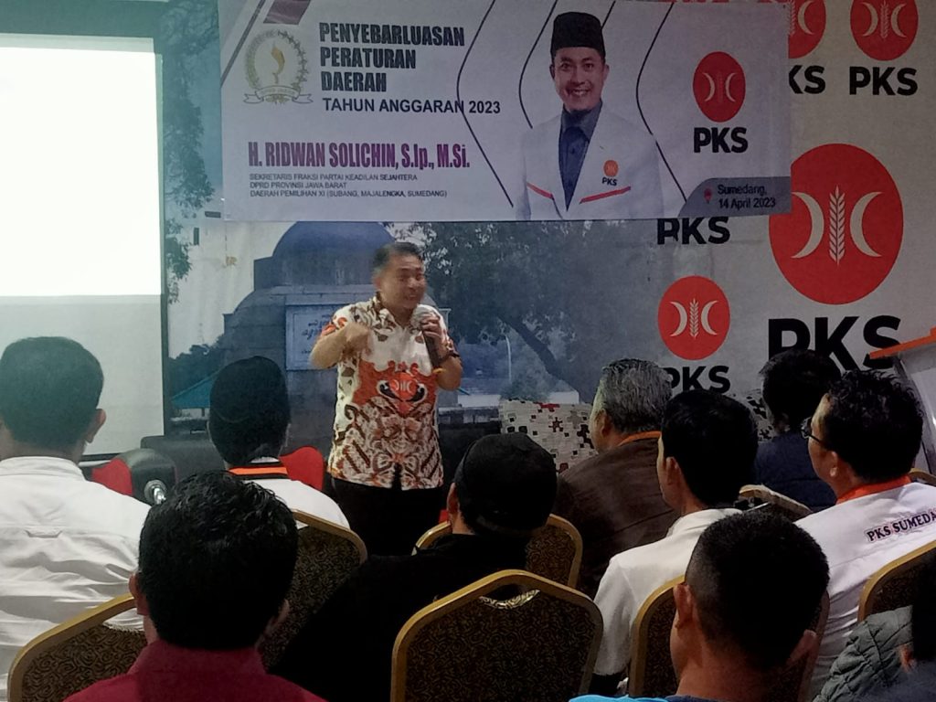 Sosialisasi tersebut di sampaikan H.Ridwan Solichin Anggota DPRD Provinsi Jawa Fraksi PKS Dapil Jabar XI Meliputi Kabupaten Sumedang, Majalengka dan Subang di DPD PKS Kabupaten Sumedang.