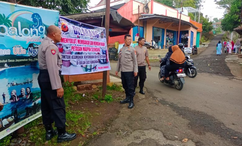Kapolsek Cibugel Lakukan Sosialisasi dan Pasang Spanduk Himbauan Larangan Bermain Petasan Selama Ramadhan.