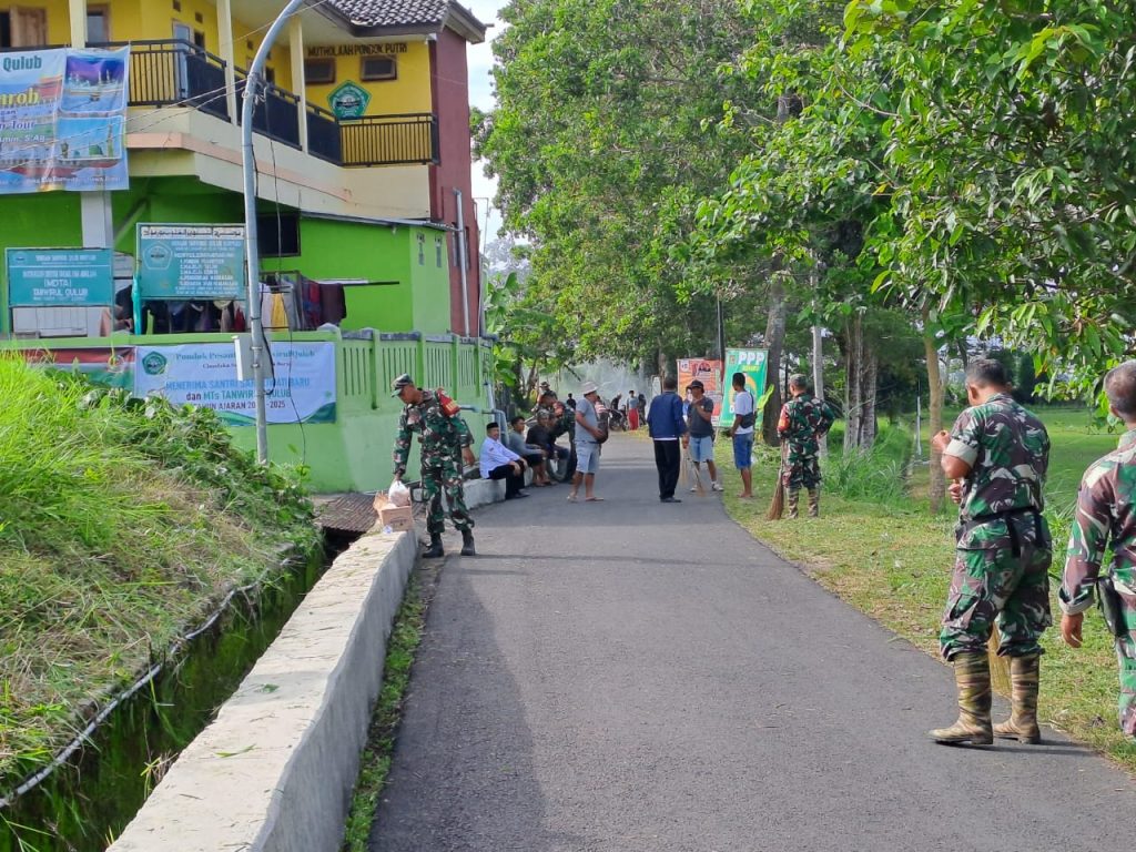 Dalam sambutannya, Danramil Kapten Inf Lesly Darmawan menyampaikan bahwa kegiatan ini bertujuan untuk mencegah banjir, mengurangi genangan air, dan menjaga kebersihan lingkungan sekitar Pondok Pesantren.