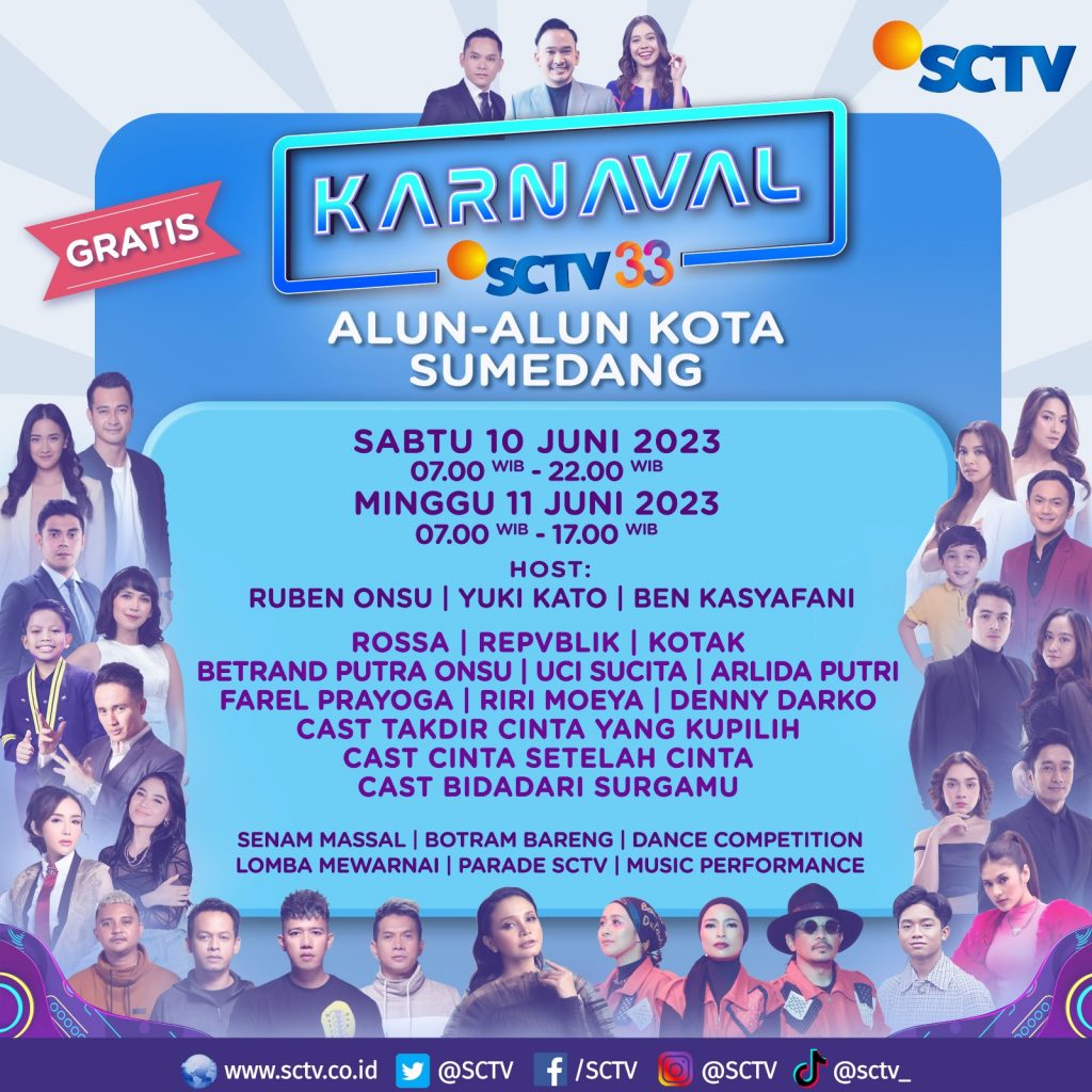 Tidak ada alasan untuk melewatkan momen seru ini. Mari bergabung dan rasakan keceriaan “Karnaval SCTV” bersama seluruh keluarga Anda.***
