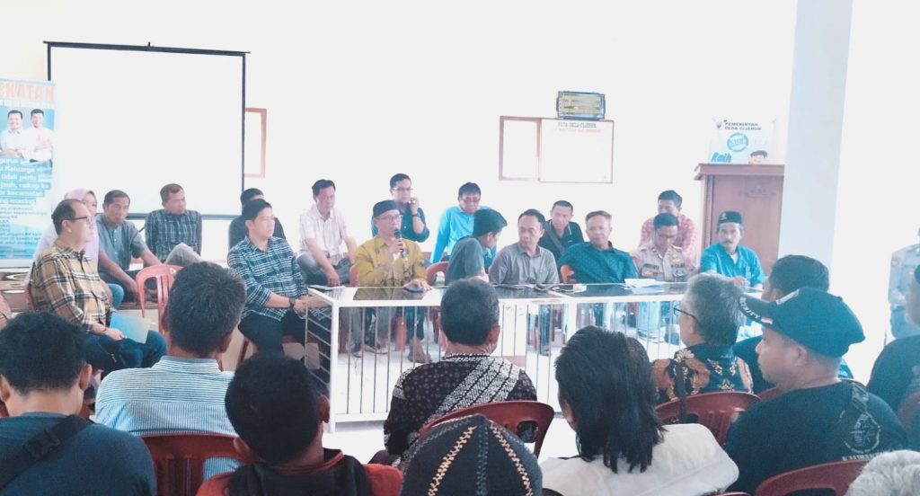 Dalam pertemuan di Balai Desa Cijeruk, hadir sejumlah pihak, termasuk anggota Komisi 4 DPRD Kabupaten Sumedang, Kepala Dinas Lingkungan Hidup Kabupaten Sumedang, Kabid Bina Marga Dinas PUPR Kabupaten Sumedang,