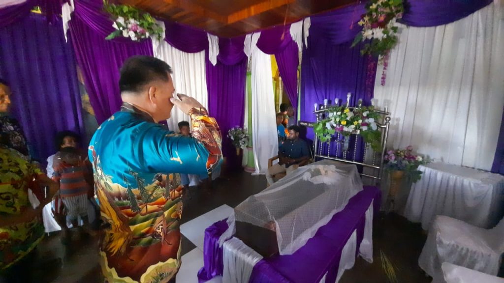 MAYBRAT,- Pj Bupati Maybrat Bernhard Rondonuwu didadampingi Asisten II dan Kadis PTSP Kab Maybrat melayat ke rumah duka Kepala Kampung Iris yang telah berpulang ke Rumah Bapa di Surga, Kamis (1/9/2022).