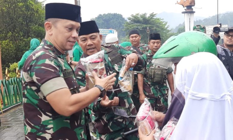 Kodim 0610/Sumedang melaksanakan kegiatan sosial dengan membagikan takjil buka puasa kepada warga sekitar.