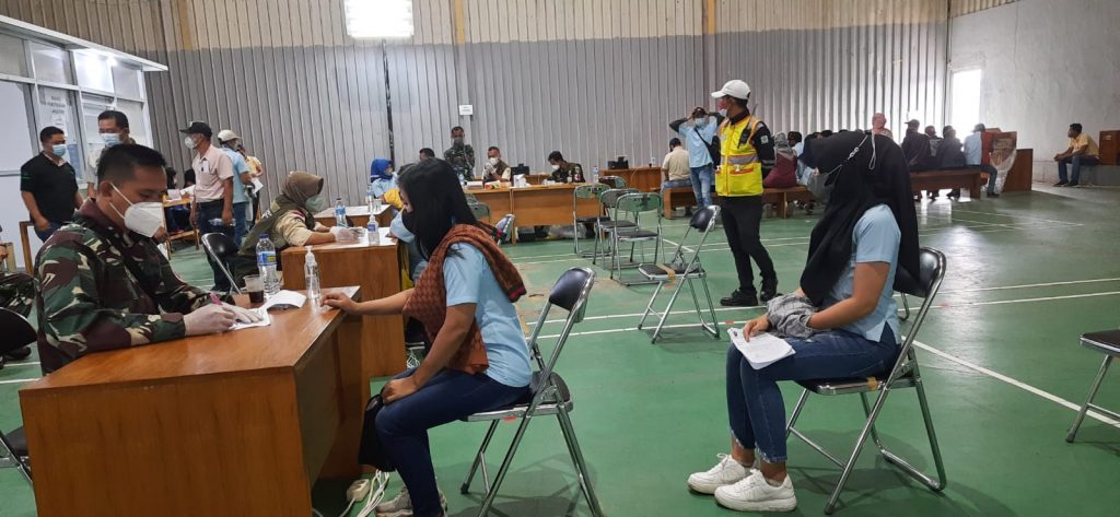 Upaya mempercepat akselerasi Vaksin Covid 19 membentuk herd imunity. Kodim 0610/Sumedang terus menggelar vaksinasi massal di sejumlah daerah di Kabupaten Sumedang. Kali ini, Senin (7/3) Kodim menyelenggarakan vaksinasi booster dan dosis ke 2 di PT Kahatex Cimanggung Jalan Raya Rancaekek Kecamatan Cimanggung Kabupaten Sumedang.