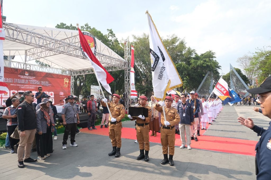 FAJARNUSANTARA.COM- Menjadi momentum bersejarah di Kabupaten Garut ketika Komisi Pemilihan Umum (KPU) Kabupaten Garut menerima Bendera Kirab Partai Politik Tahun 2024 dari rekan sejawat mereka di KPU Kabupaten Sumedang.