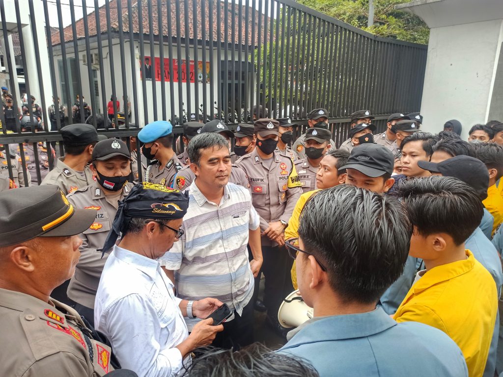 Adapun ketua DPRD Sumedang, Irwansyah Putra, menyampaikan pesan kepada mahasiswa melalui sambungan telepon yang di loudspeaker melalui pengeras suara.