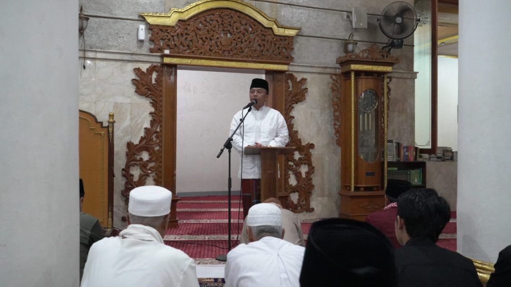 Saat memberikan sambutan sebelum Salat Tarawih berjamaah di Masjid Agung Sumedang, Herman menegaskan pentingnya meningkatkan kualitas spiritual dan sosial selama Ramadan. Senin 11 Maret 2024.