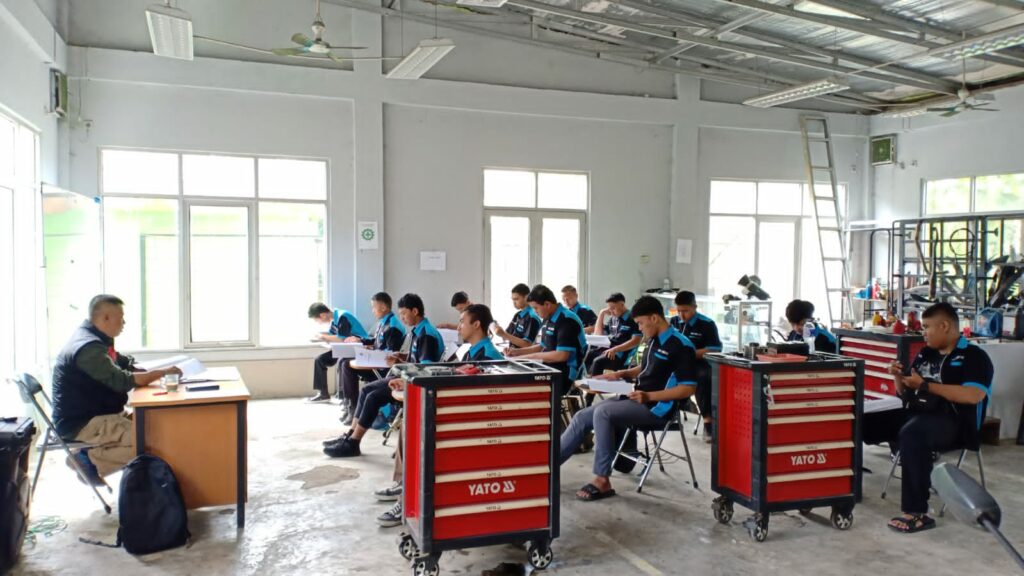 FAJARNUSANTARA.COM, SUMEDANG – Seusai mengikuti pembekalan materi dan praktek di kampus MAN 1 Sumedang Plus Keterampilan , anak didik MAN 1 Sumedang mengikuti ujian praktek otomotif sepeda motor konvensional yang di laksanakan di workshop BLK komunitas pondok pesantren modern An Nuur Sumedang yang pelaksanaan ujian praktek selama 1 hari, Sabtu (4/3/2023).