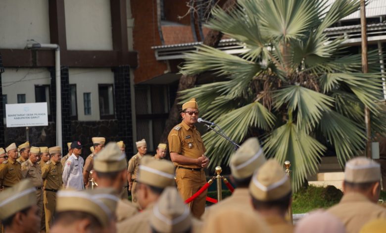 FAJARNUSANTARA.COM- Wakil Bupati Garut, dr. Helmi Budiman, mengenang perjalanan jabatannya dalam sebuah apel gabungan di Lapangan Sekretariat Daerah, Tarogong Kidul, Kabupaten Garut, pada Senin (15/1/2024).