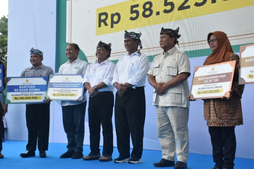 “Pada kegiatan pembinaan Penyuluhan Pertanian dan Petani serta Food Estate Partisipatif Provinsi Jawa Barat, Sumedang menerima bantuan senilai Rp 20 miliar dari Kementerian Pertanian untuk Peningkatan Produksi Pangan Nasional,” tambahnya.