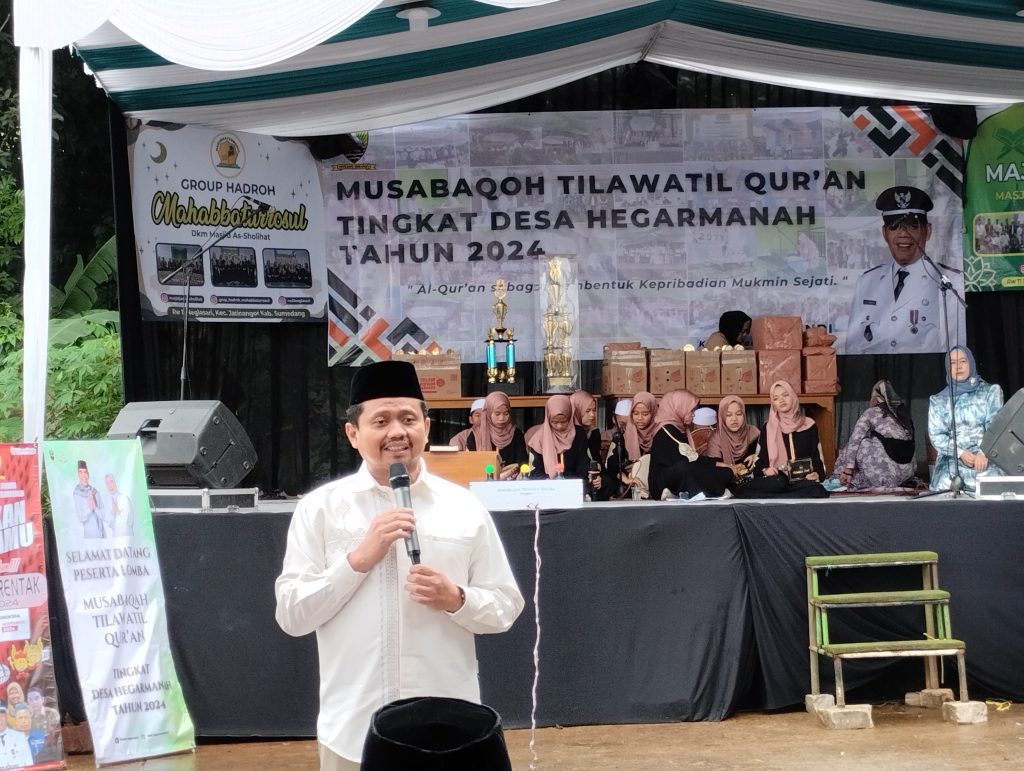 Donny Ahmad Munir menyampaikan rasa syukur dan kebahagiaannya atas penyelenggaraan Musabaqah Tilawatil Quran (MTQ) antar RW yang rutin diadakan setiap tahun di Desa Hegarmana. Acara ini berlangsung meriah dengan banyaknya cabang lomba dan peserta yang turut berpartisipasi.
