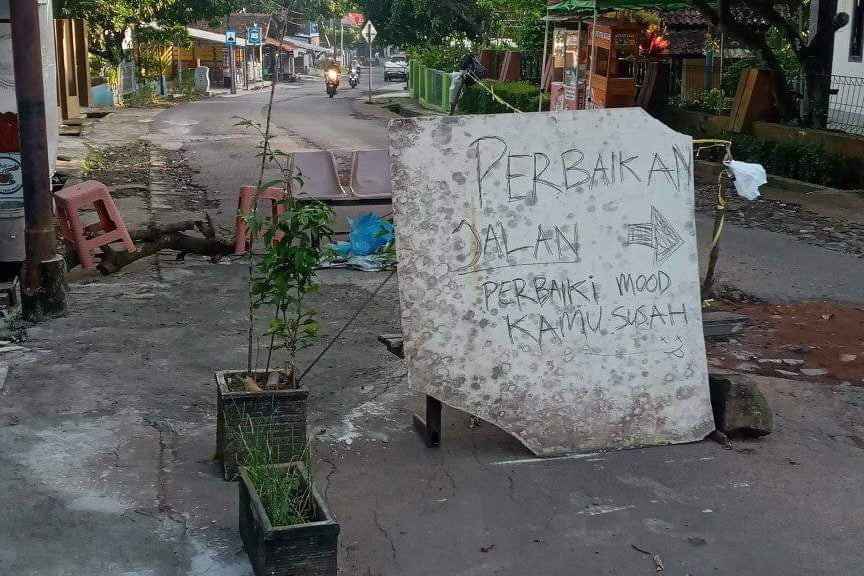 Seorang netizen dengan akun Facebook ‘Aglo Cigalagah’ mengungkapkan kekesalannya karena jalanan di Kabupaten Sumedang rusak.
