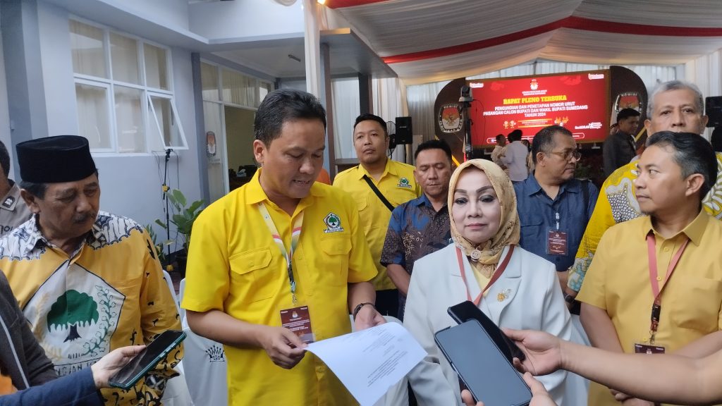 FAJARNUSANTARA.COM- Pengundian nomor urut calon Bupati Sumedang untuk Pemilu 2024 berlangsung penuh antusias di Kantor KPU Kabupaten Sumedang pada tanggal 23 September 2024. Surat keputusan nomor 01 dari Tim Kampanye resmi diterbitkan dan langsung berada di bawah kendali Ibu Eni serta Pak Ridwan Solihin.