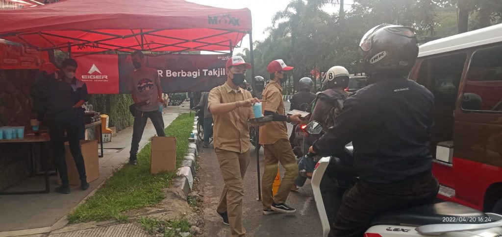 FAJARNUSANTARA.COM, SUMEDANG – Sebanyak 300 paket Takjil dibagikan Managemen Eiger Adventure Store kepada pengguna jalan yang melintasi didepan outlet Eiger Jatinangor Jl. Raya Jatinangor No. 84, Cibeusi, Kec. Jatinangor.