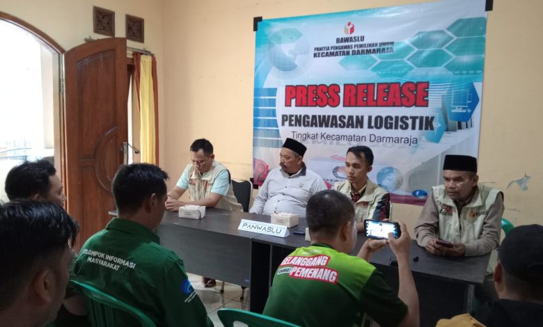 Ketua Panwaslu Kecamatan Darmaraja Drs. Wahidin dalam kegiatan Press Release tersebut menyampaikan bahwa dalam kegiatan Pengawasan Logistik Pemilu yang dilaksanakan oleh Panwaslu Kecamatan Darmaraja adalah untuk memastikan bahwa Logistik Pemilu di Kecamatan Darmaraja tepat jenis, tepat jumlah, tepat kualitas, tepat waktu serta tepat sasaran.