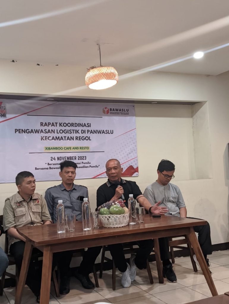 FAJARNUSANTARA.COM, Bandung – Panwaslu Kecamatan Regol Kota Bandung menggelar Rapat Kordinasi (Rakor) persiapan pendistribusian Logistik untuk Pemilu tahun 2024 di Xibamboe Caffe and Resto Kecamatan Regol, Jl. Sriwijaya No.38 Kelurahan Cigereleng Kecamatan Regol Kota Bandung, Jumat (24/11/2023).