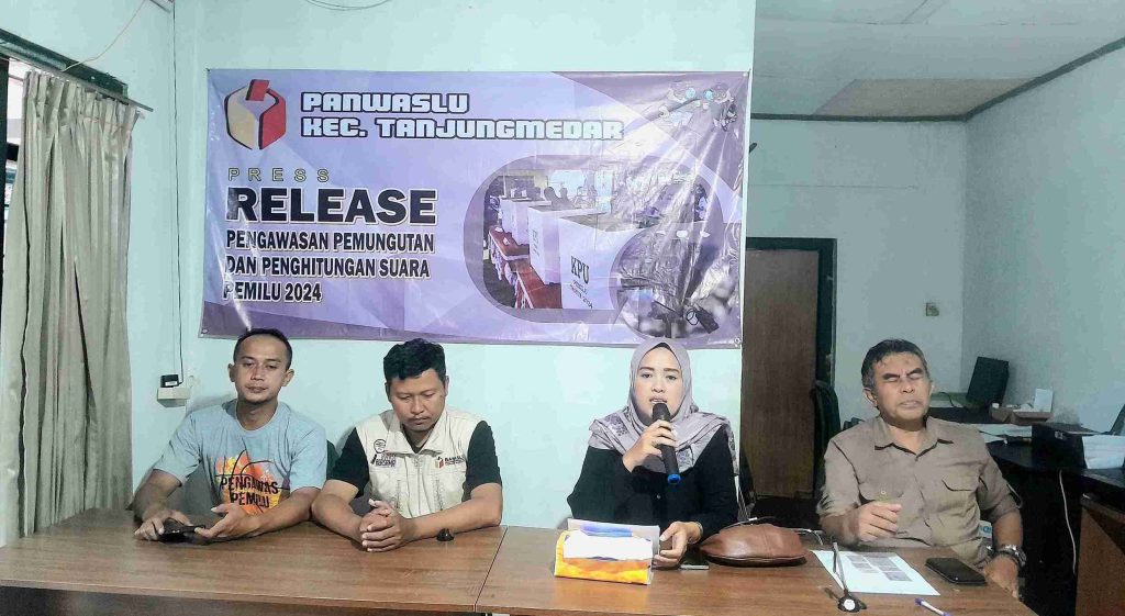 FAJARNUSANTARA – Pengawas Pemilihan Umum Kecamatan (Panwascam) Tanjungmedar melakukan pengawasan pemungutan dan penghitungan surat suara.