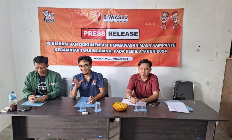FAJARNUSANTARA.COM – Penwaslu Kecamatan (Panwascam)Tanjungsiang menggelar Press Release Publikasi dan Dokumentasi Pengawasan Masa Kampanye pada hari Selasa, 23 Januari 2024.