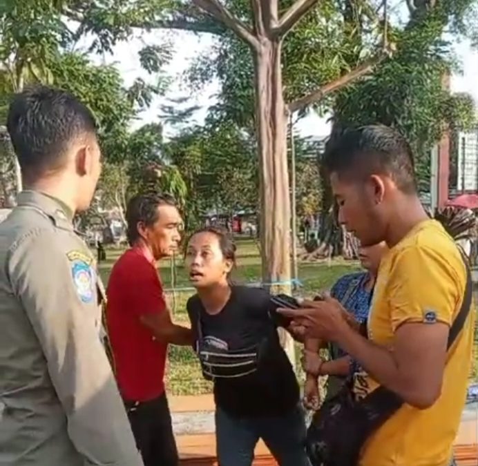 FAJARNUSANTARA.COM– Seorang pedagang perempuan memarahi hingga menyerang petugas Satpol PP saat dilakukan patroli dan edukasi larangan berjualan di area terlarang Alun-Alun Sumedang, Selasa pagi. Selasa 22 Juli 2025.
