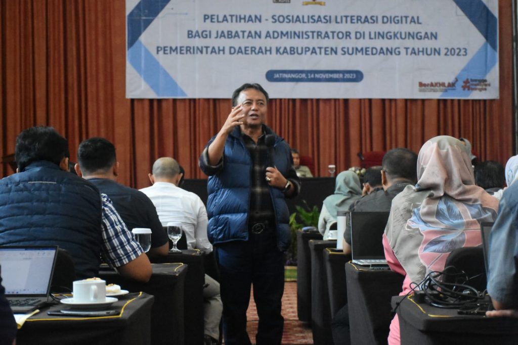 FAJARNUSANTARA.COM- Pemerintah Daerah Sumedang menggelar pelatihan dan sosialisasi literasi digital di Hotel Puri Khatulistiwa, Jatinangor, Kabupaten Sumedang. Kegiatan ini diikuti oleh administrator Pemerintahan Daerah untuk mendukung transformasi digital di 29 SKPD di 26 Kecamatan.