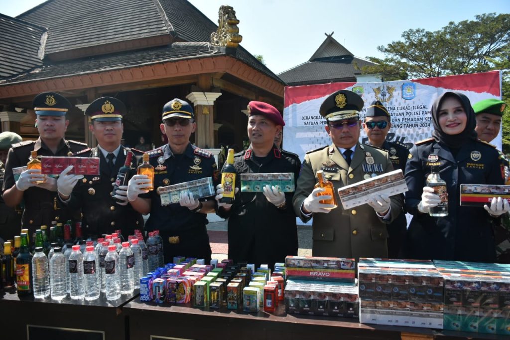 Pemusnahan simbolis ini dipimpin oleh Pj Bupati Sumedang, Yudia Ramli, bersama Kepala Kanwil DJBC Jawa Barat, Finari Manan, saat Upacara Peringatan HUT ke-74 Satuan Polisi Pamong Praja, HUT ke-62 Satuan Perlindungan Masyarakat, dan HUT ke-105 Pemadam Kebakaran di halaman Gedung Pusat Pemerintahan Sumedang (PPS) pada Kamis (20/6/2024).