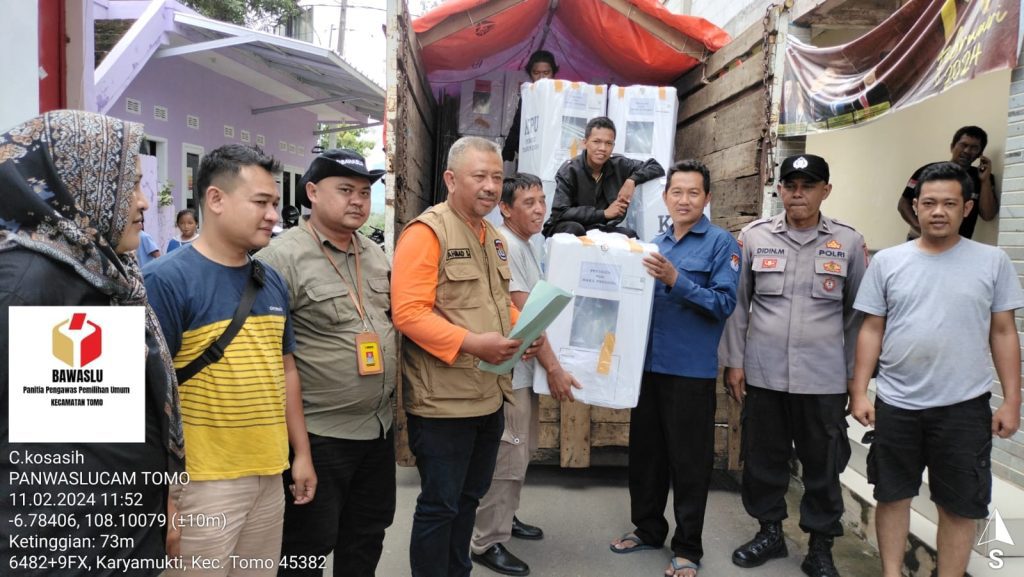 “Sesuai dalam aturan, H-1 (logistik) sudah ada di TPS. Alhamdulillah hasil pengecekan logistik di semua TPS se-Kecamatan Tomo aman. Insya Allah siap dengan bismillah dan semoga alhamdulillah Tomo bisa sukses tanpa ekses menghasilkan para pimpinan hasil demokrasi,” kata Ketua Panwaslu Kecamatan Tomo, Cecep Kosasih, Selasa (13/2/2024).