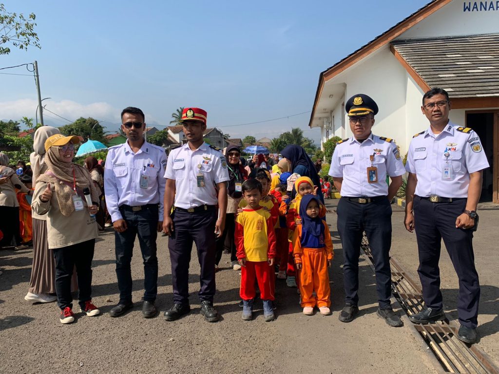 Anak-anak terlihat sangat antusias dan berbaris dengan rapi saat menjelajahi area Stasiun Wanaraja.