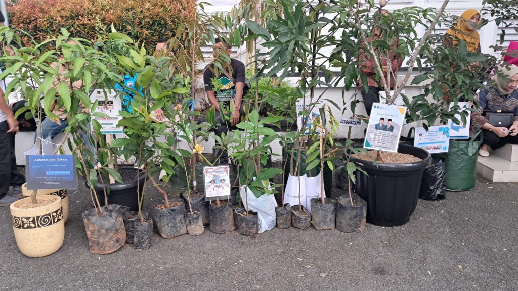 FAJARNUSANTARA.COM – Ratusan bibit pohon produktif berjejer rapi di halaman depan Gedung Negara Sumedang, menggantikan karangan bunga sebagai bentuk ucapan selamat atas pelantikan Bupati Sumedang terpilih, Dony Ahmad Munir, dan Wakil Bupati Fajar Aldila.