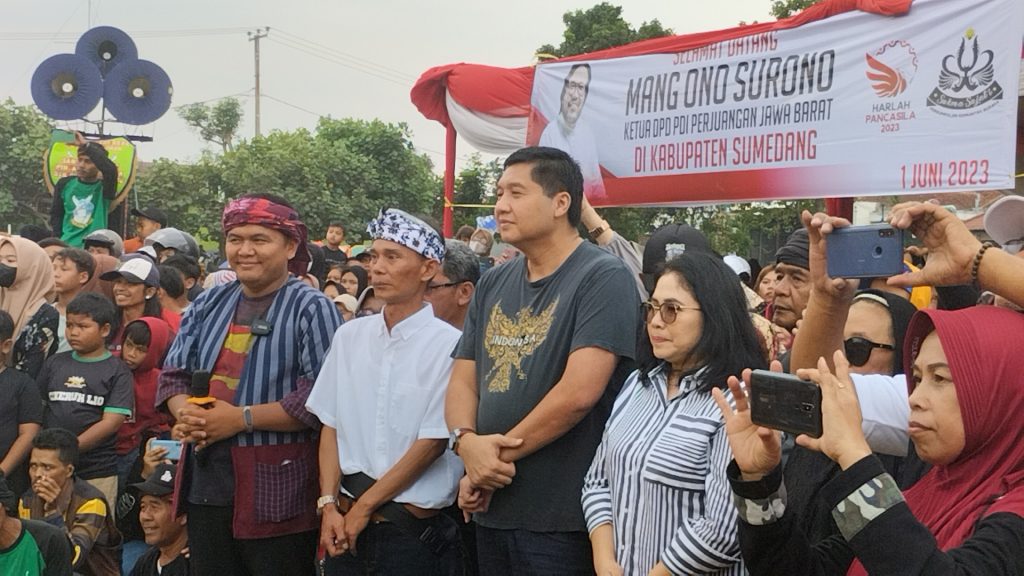 Ribuan Warga Antusias mengikuti acara yang digelar dilapang Sepak Bola Desa Cikeruh Kecamatan Jatinangor Kabupaten Sumedang, acara semakin semarak dengan kehadiran Maruarar Sirait yang akrab di Panggil Bang Ara.