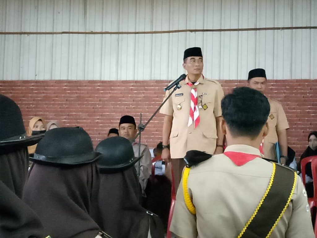 FAJARNUSANTARA.COM, Sumedang – Camat Cimalaka, Drs Taufik Hidayat Slamet M.Si yang juga Ketua Mabiran Kecamatan Cimalaka menjadi pembina upacara pelaksanaan Upacara peringatan Hari Pramuka ke 61 Tahun 2022 yang berlangsung Aula Kampus MAN 1 Sumedang di Cimalaka, Senin (15/08/2022). Upacara Hari Pramuka Ke 61 diikuti seluruh peserta Pramuka Penegak Gudep MAN 1 Sumedang dengan mengusung tema Mengabdi Tanpa Batas Untuk Membangun Ketangguhan Bangsa.