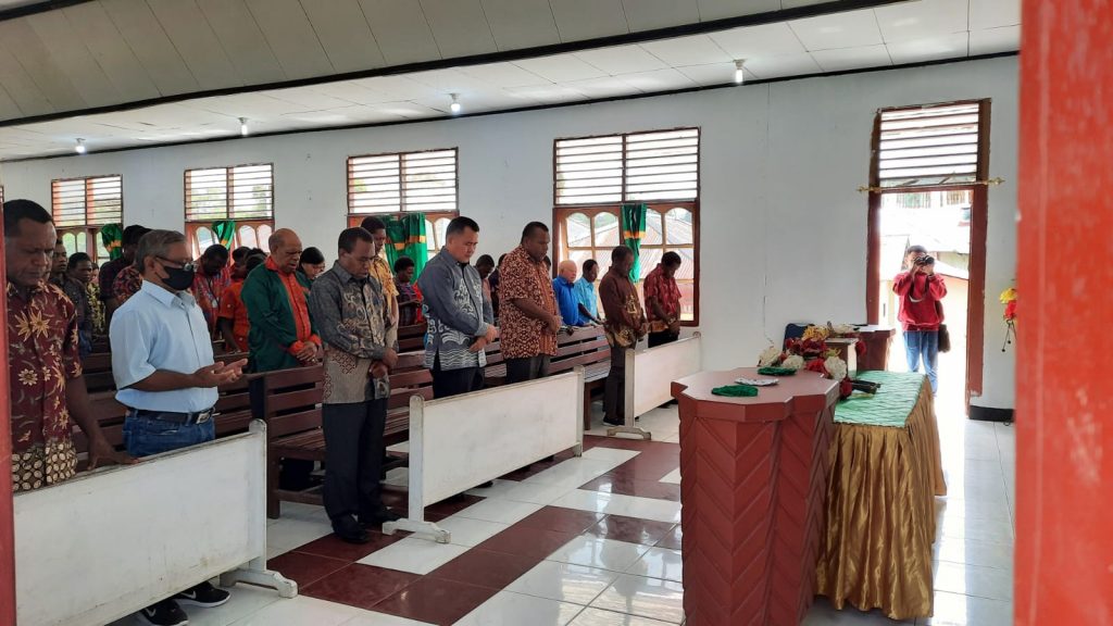 MAYBRAT,– Pj Bupati Maybrat, Bernhard E. Rondonuwu bersama Kapolres Maybrat, Asisten II, Kadis PU Maybrat hadir untuk beribadah di GKI Sion Kumurkek, Distrik Aifat, Kabupaten Maybrat. Turut hadir juga tokoh masyarakat Agustinus Saa dalam ibadah Minggu ini.