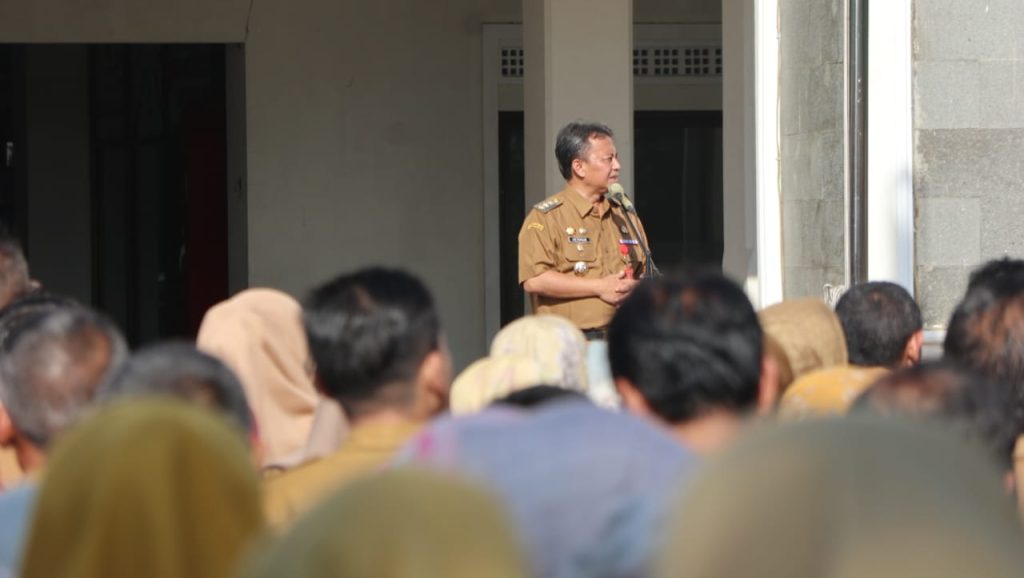 Pj. Bupati Sumedang, Herman Suryatman, selaku pembina upacara, menekankan pentingnya kerja sama ASN dalam mencapai target pembangunan.
