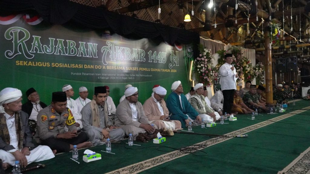 “Dalam momentum Isra Mi’raj ini, mari bersihkan hati dan pikiran kita sebagai bekal dalam melaksanakan segala kegiatan,” ujar Pj Bupati Herman pada peringatan Rajaban Akbar dan Doa Bersama “Sukses Pemilu Damai Tahun 2024” di Pondok Pesantren Islam Terpadu Asy-Syifaa Wal Mahmudiyyah, Minggu (4/2/2024).