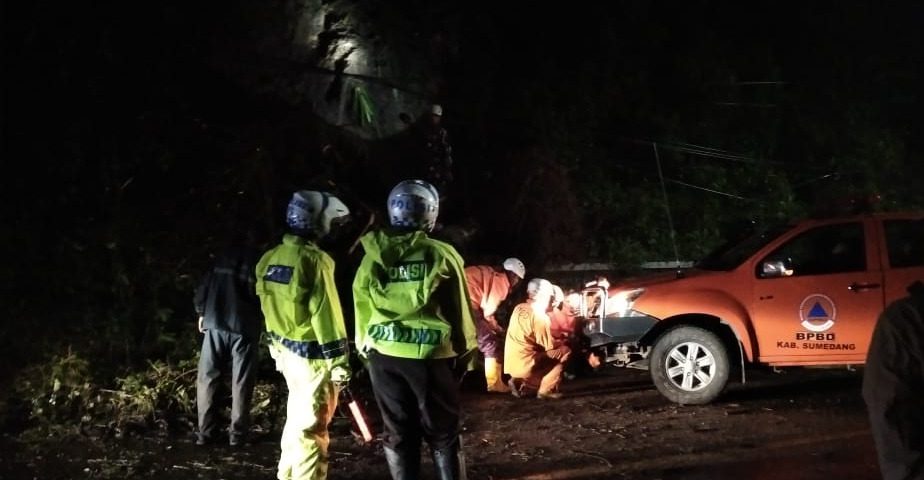 Insiden tersebut mengakibatkan kendaraan yang melintas di daerah tersebut terhenti total, akibat intensitas hujan lebat yang mengguyur wilayah Sumedang.