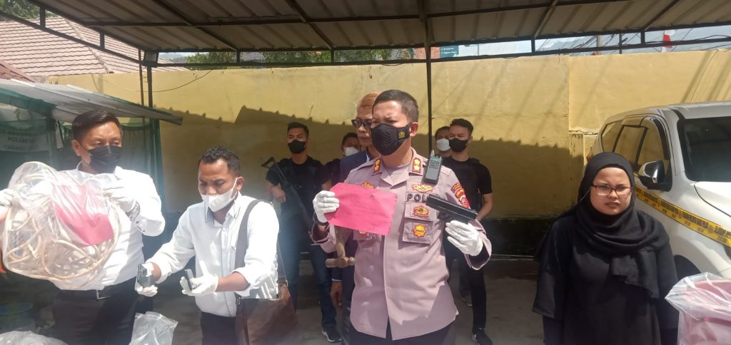 Selanjutnya Kapolres menerangkan, ketika si Korban terjatuh langsung leher korban di jerat menggunakan kabel hingga tewas, setelah itu, korban lalu di ikat dengan kabel, digulung dengan taplak meja, plastik, dan selimut. Lalu dimasukan ke dalam mobil merek Pajero sport warna putih milik korban dan di bawa ke wilayah Garut.