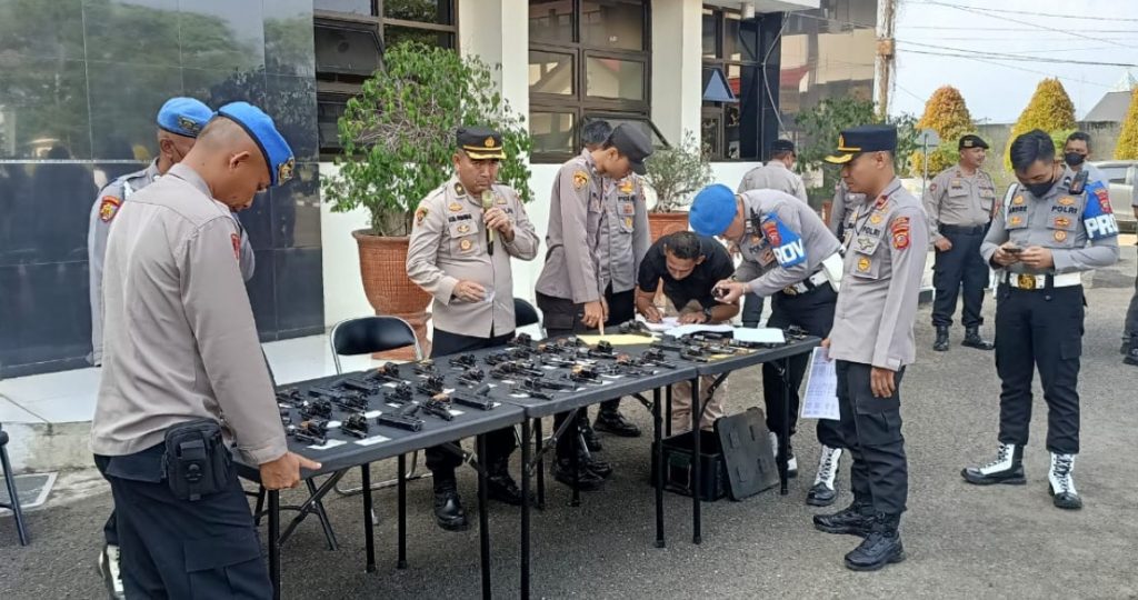 Pengecekan rutin senpi dinas merupakan bagian dari upaya yang dilakukan oleh Polres Sumedang untuk memastikan keamanan dan kesiapan operasional senjata api yang digunakan oleh petugas kepolisian.