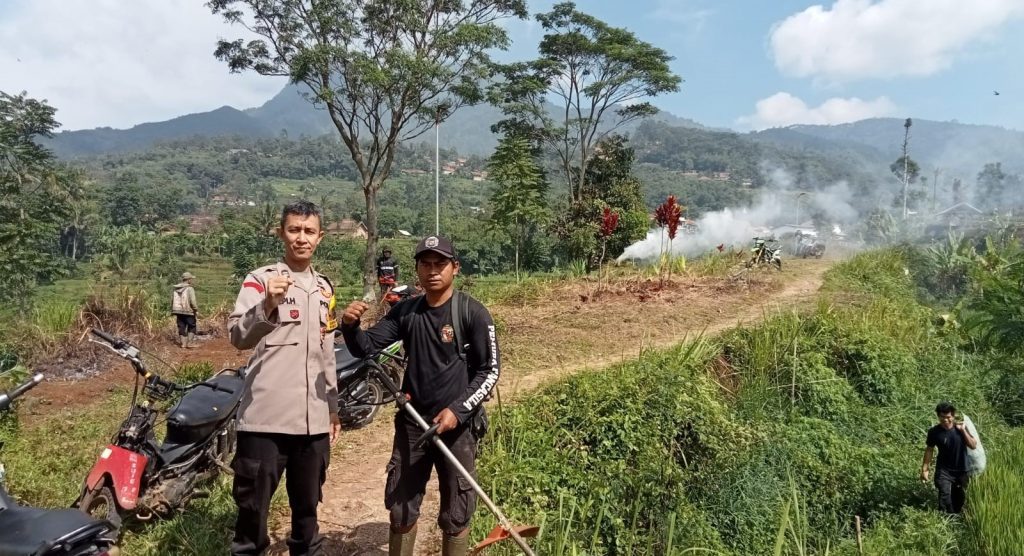 FAJARNUSANTARA.COM,- Polsek Sukasari Bhabinkamtibmas Desa Nanggerang Aiptu Cecep cepi Polres Sumedang memimpin kerja bakti untuk menjaga kebersihan lahan pemakaman pada Senin (10/04/2023).