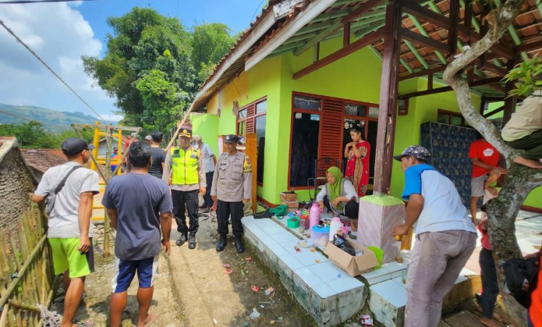 Pondasi Rumah Warga Ciherang Amblas, Polisi dan Warga Lakukan Evakuasi