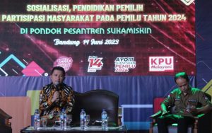 FAJARNUSANTARA.COM, Kota Bandung, Santri Pondok Pesantren Sukamiskin mengikuti kegiatan Sosialisasi, Pendidikan Pemilih dan Partisipasi Masyarakat untuk Pemilu 2024 yang diselenggarakan oleh PPK Arcamanik dan PPS se-Kecamatan Arcamanik. Kegiatan ini berlangsung pada hari Rabu (15/06) di Pondok Pesantren Sukamiskin Bandung.
