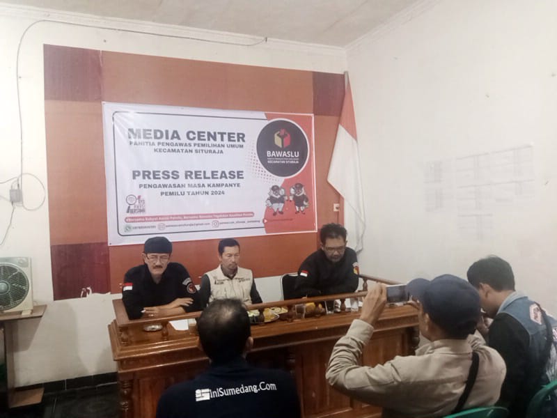 FAJARNUSANTARA.COM, Situraja – Berdasarkan pengawasan kampanye pada tanggal 28 November 2023 sampai tanggal 29 Januari 2024 maka Panwaslu Kecamatan Situraja kabupaten Sumedang mengadakan Press Pelease mengenai pengawasan masa kampanye untuk pemilu tahun 2024 yang bertempat di kantor sekretariat Panwaslu kecamatan Situraja, Selasa (30/01/24).