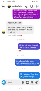 Akun IG laman resminya coba saya DM tapi tidak ada Jawaban dan penjelasan, bahkan sekarang ramai diserang oleh sejumlah peserta, jadi bukan hanya saya saja yang kecewa yang lainya juga sama.****