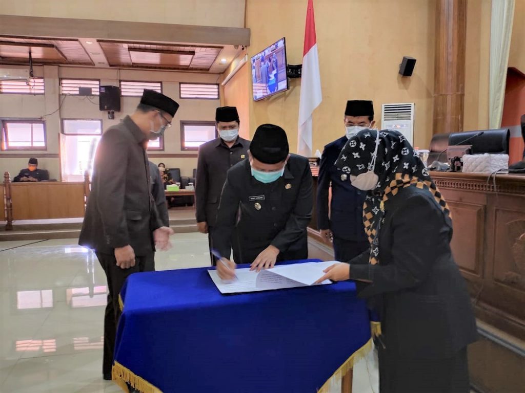FAJARNUSANTARA, SUMEDANG – Rancangan Peraturan Daerah (Raperda) tentang Perubahan APBD 2020 menjadi Peraturan Daerah (Perda), ditetapkan DPRD Sumedang bersama Pemerintah Daerah Kabupaten Sumedang. Pengesahan ini, digelar dalam rapat paripurna di Ruang Paripurna DPRD Sumedang, Jumat (18/9).