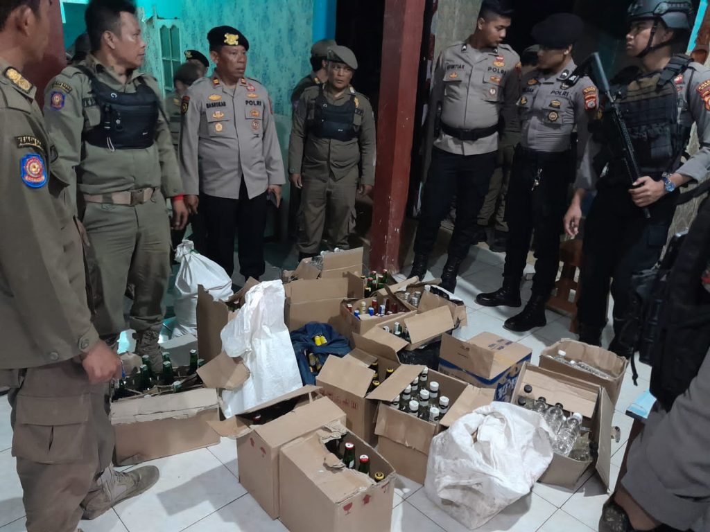 Ribuan botol miras dengan merk atau jenis yang berbeda-beda berhasil diamankan.