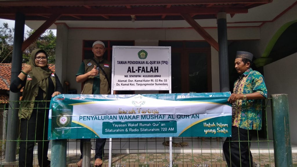 Salah satu penerima Al Quran baru yaitu TPQ Al Falah yang beralamat di Dusun Kamal Kaler RT 2 RW 3 Desa Kamal, ustaz Didin selaku ketua menyampaikan ucapan terimaksih.