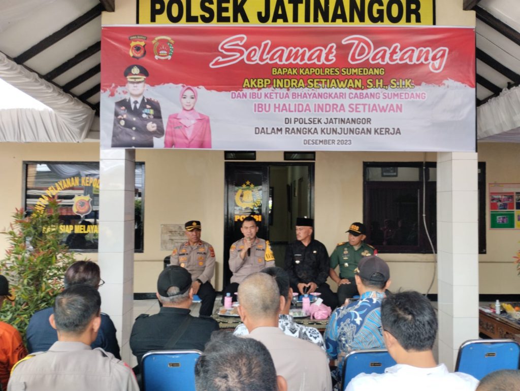 FAJARNUSANTARA.COM- Kapolres Sumedang, AKBP Indra Setiawan, melaksanakan kunjungan ke Polsek Jatinangor, Kamis (7/12). Acara tersebut disambut hangat oleh Kapolsek, Camat, Danramil Kecamatan Jatinangor, serta sejumlah tokoh masyarakat dan instansi terkait.