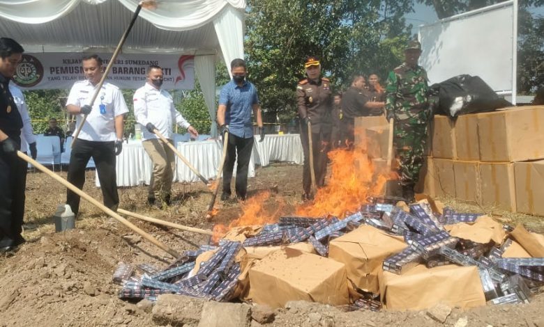 Kejaksaan Negeri Sumedang telah memusnahkan 848.000 batang rokok ilegal beserta barang bukti lainnya yang telah memiliki ketetapan hukum tetap atau inkrah.**