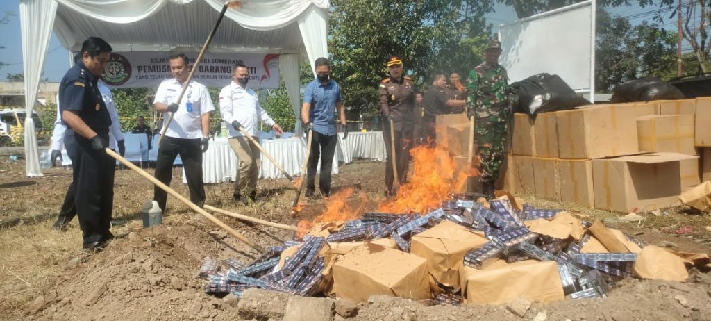 Kejaksaan Negeri Sumedang telah memusnahkan 848.000 batang rokok ilegal beserta barang bukti lainnya yang telah memiliki ketetapan hukum tetap atau inkrah.**