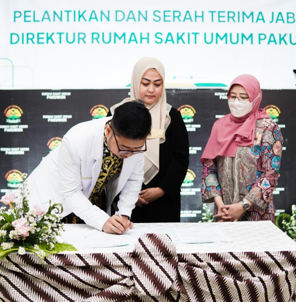 Pada hari ini, Rabu 21 September 2022 bertempat di Aula Rumah Sakit Umum Pakuwon dilaksanakan acara proses pelantikan dan serah terima jabatan Direktur Rumah Sakit Umum Pakuwon dari Direktur lama dr Fauziah Fatma kepada drg Rikky Bagus Pratama Putra, M.HKes