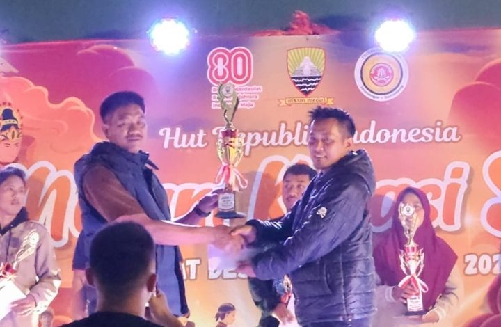 FAJARNUSANTARA.COM- GOR Desa Cikeruh, Kecamatan Jatinangor, Kabupaten Sumedang, Jawa Barat, dipadati warga pada Jumat malam, 5 September 2025. Mereka menanti pengumuman hasil perlombaan Agustusan, salah satunya lomba menghias gapura yang dimenangkan oleh Rukun Warga (RW) 04.