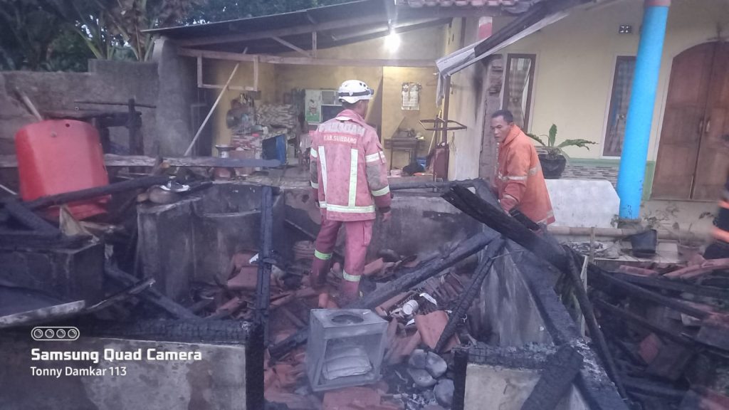 Api diketahui nenyala dibagian dapur lalu merembet kedalam, alhamdulillah tidak ada korban jiwa, keluarga yang terdiri dari 5 orang, yakni Ibu Eceh (43), Sumiati (22), Linda (12), Rafi (4) dan Bapa Sujana (38).
